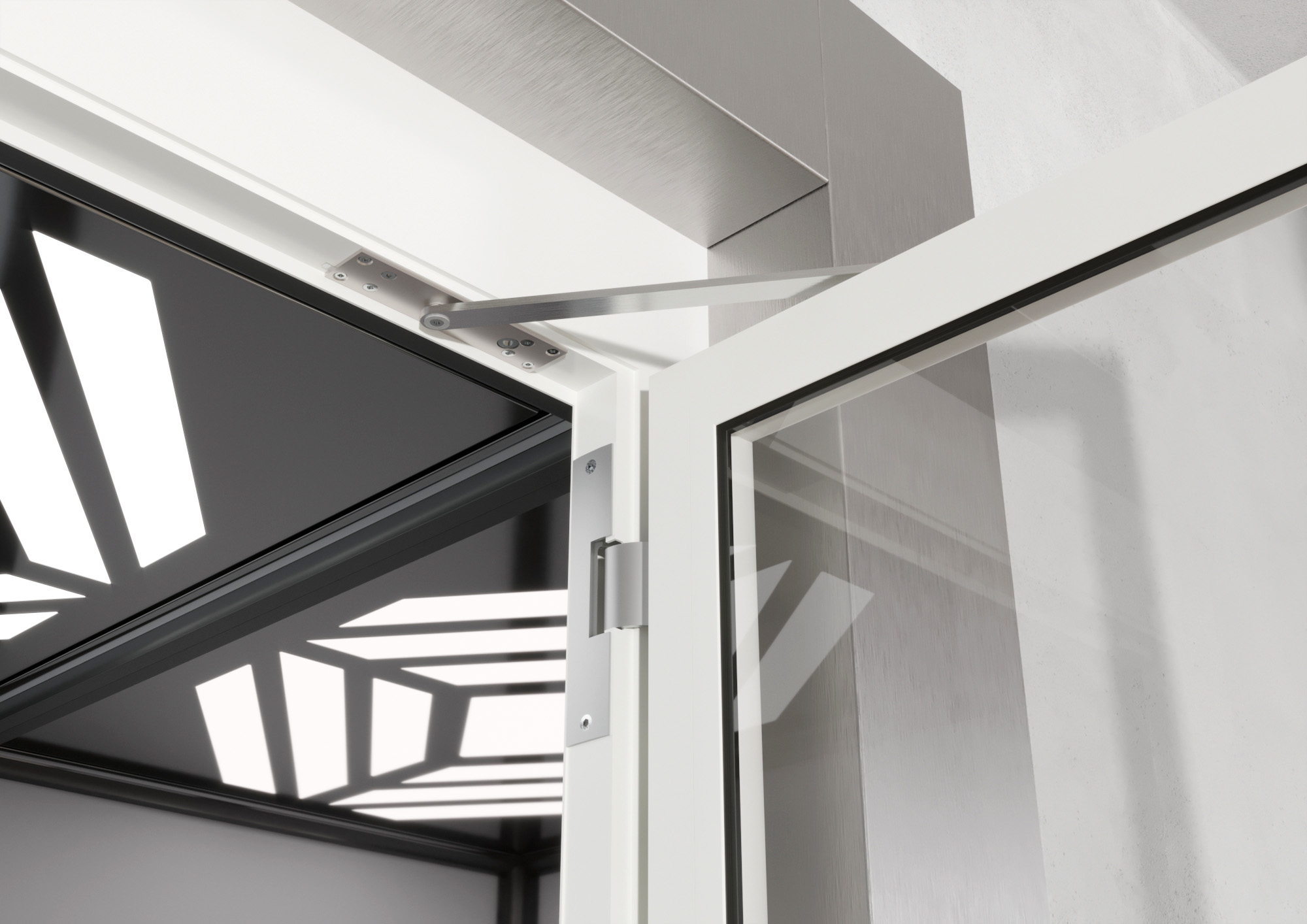 Telaio e anta completamente in alluminio conferiscono leggerezza e resistenza;